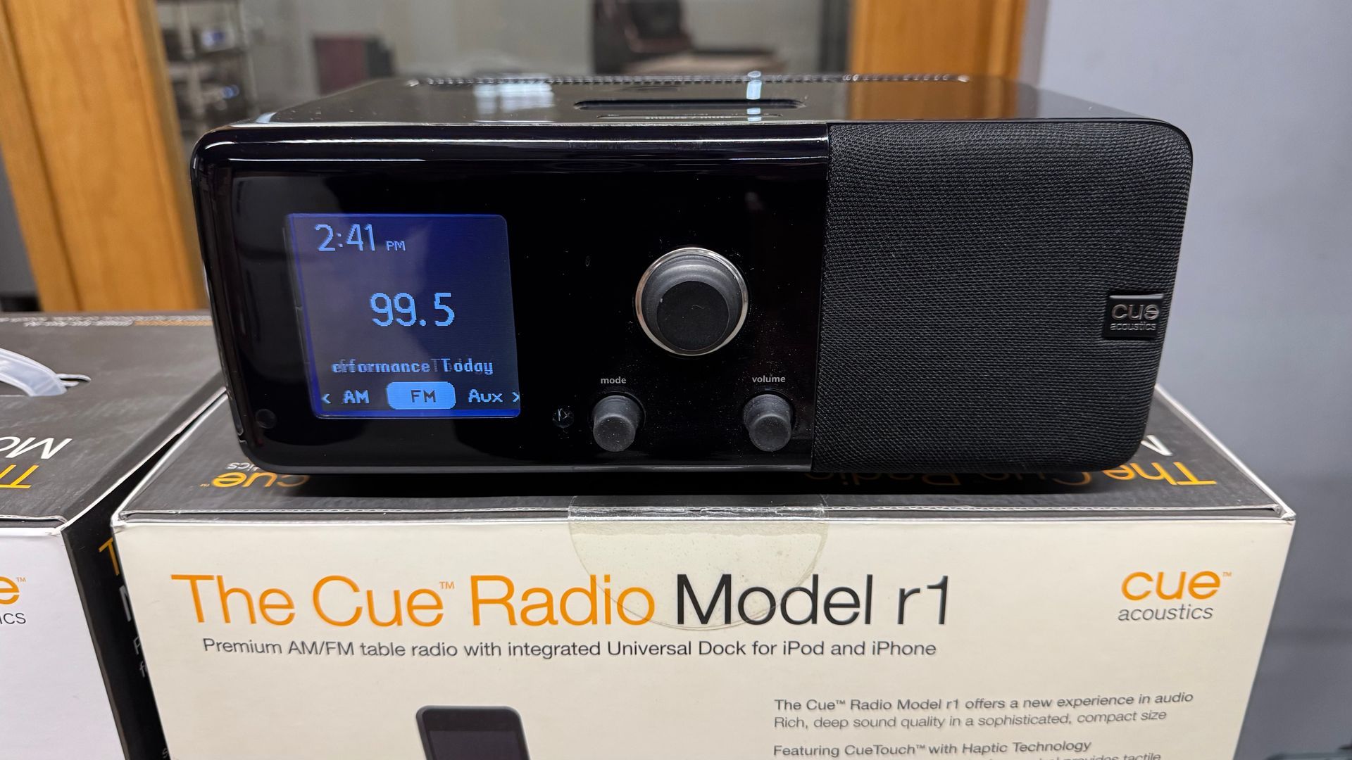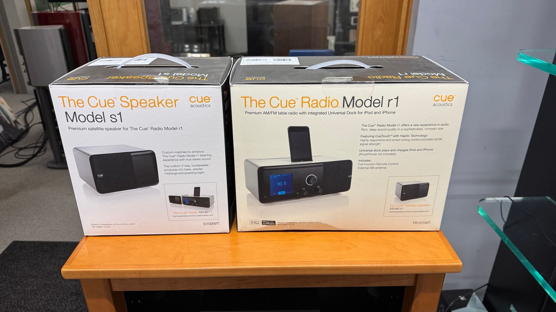 Cue R1 and S1 stereo table top radio. R1 shown in top picture. AM/FM, Aux input and dual alarm.